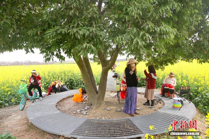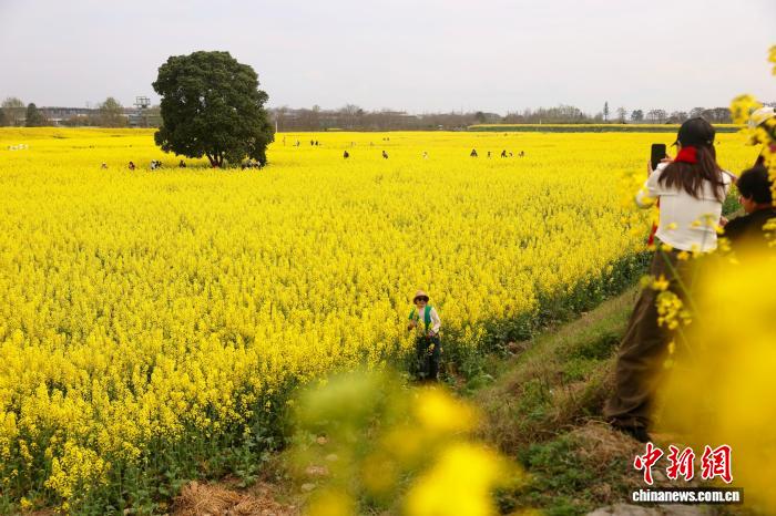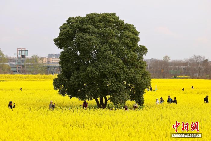 3月3日,4川成皆环乡绿说千亩油菜花海中1棵年夜树吸收旅客挨卡。中新社记者 弛浪 摄